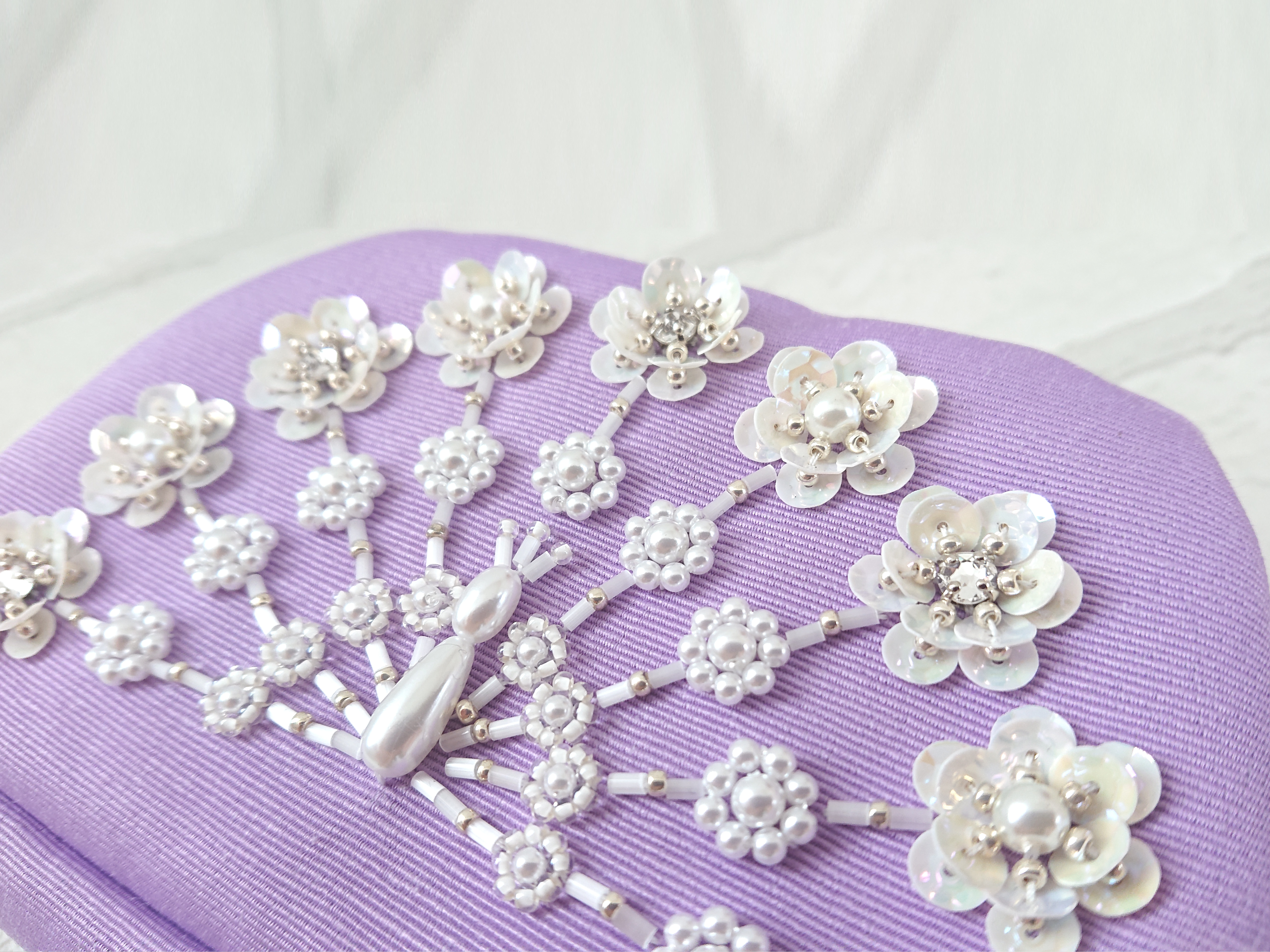 ビーズ刺繍のおしゃれポーチ(ホワイト)