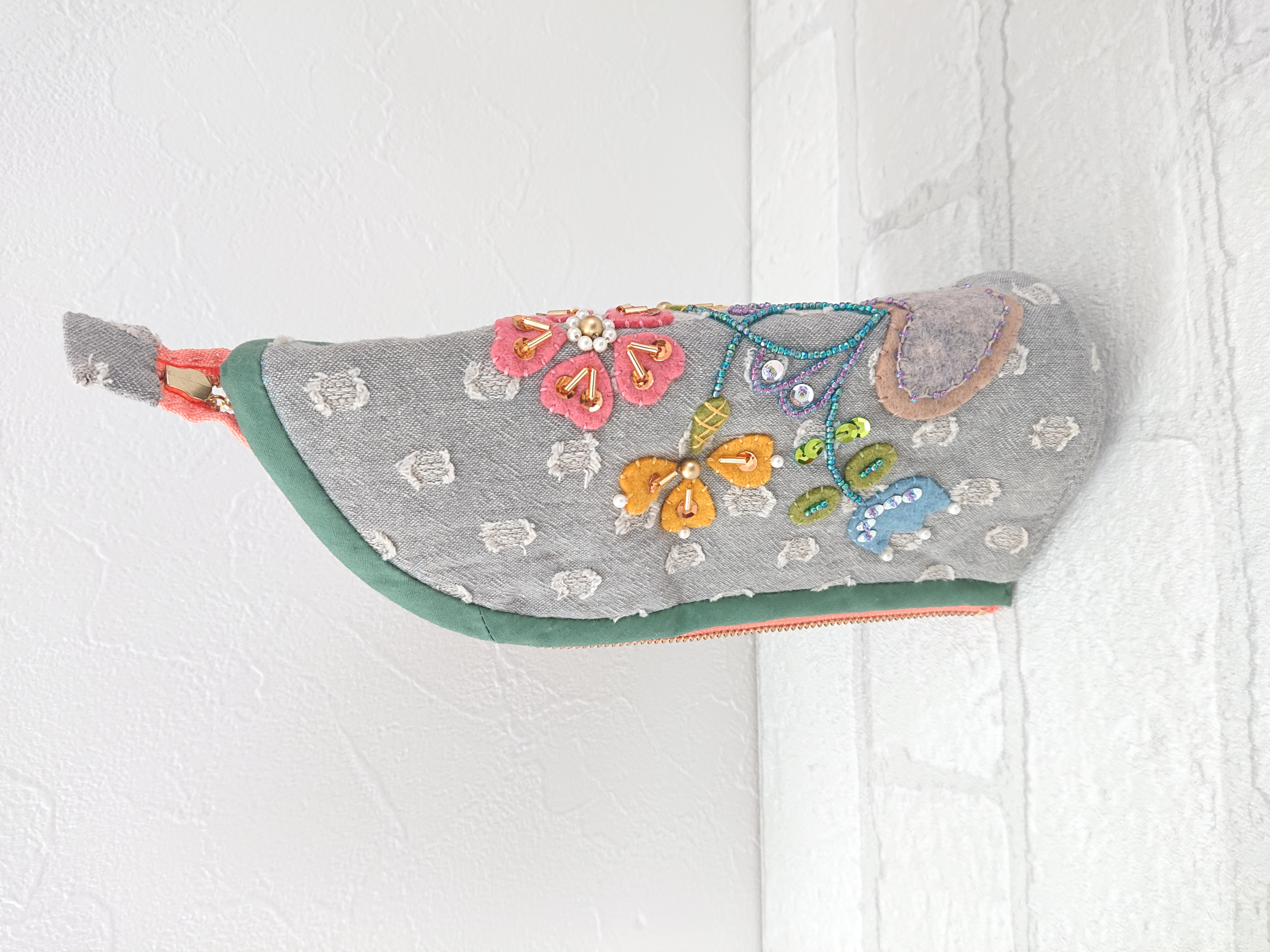 フェルトでアップリケしてビーズ刺繍をぷらすします。