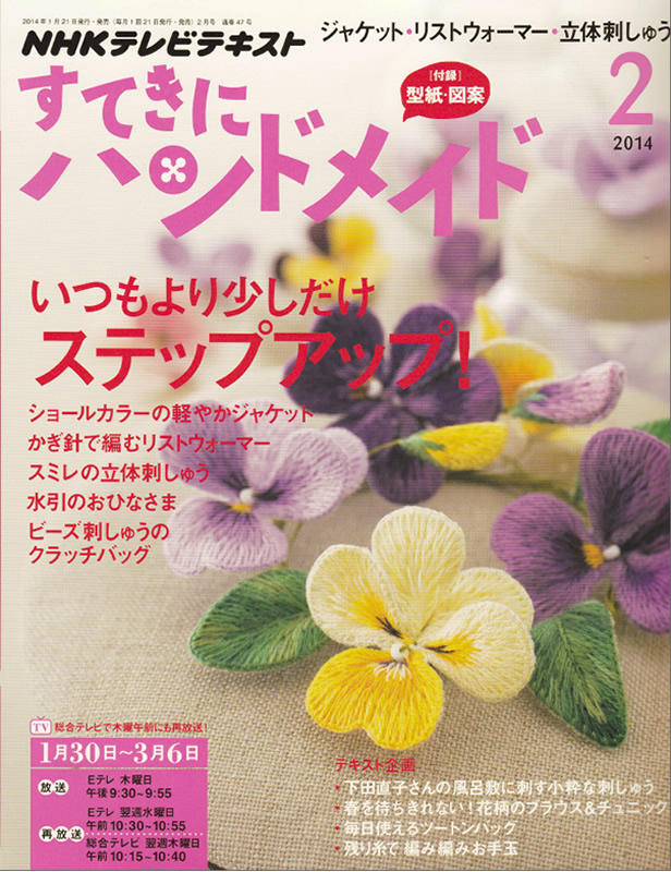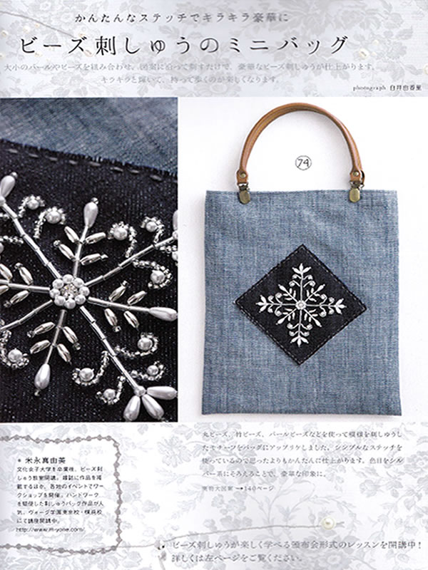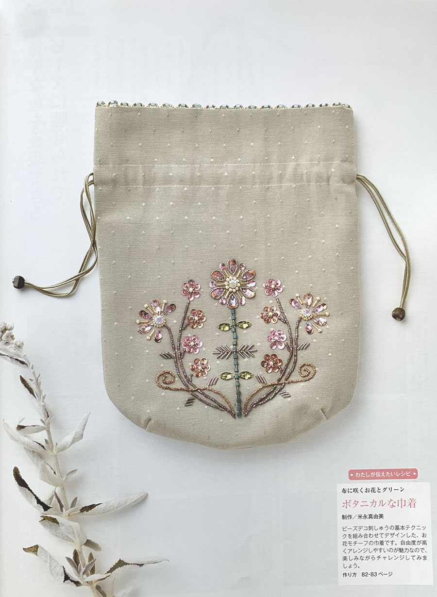 『刺しゅうの時間』にビーズ刺し子の巾着を掲載していただきました。