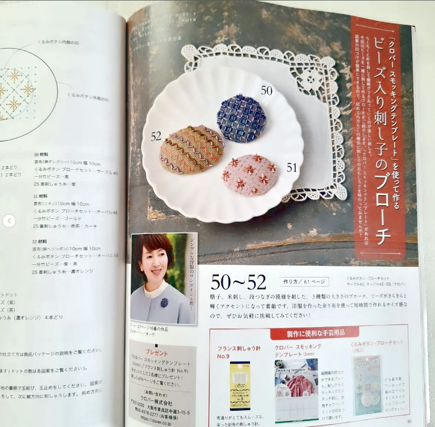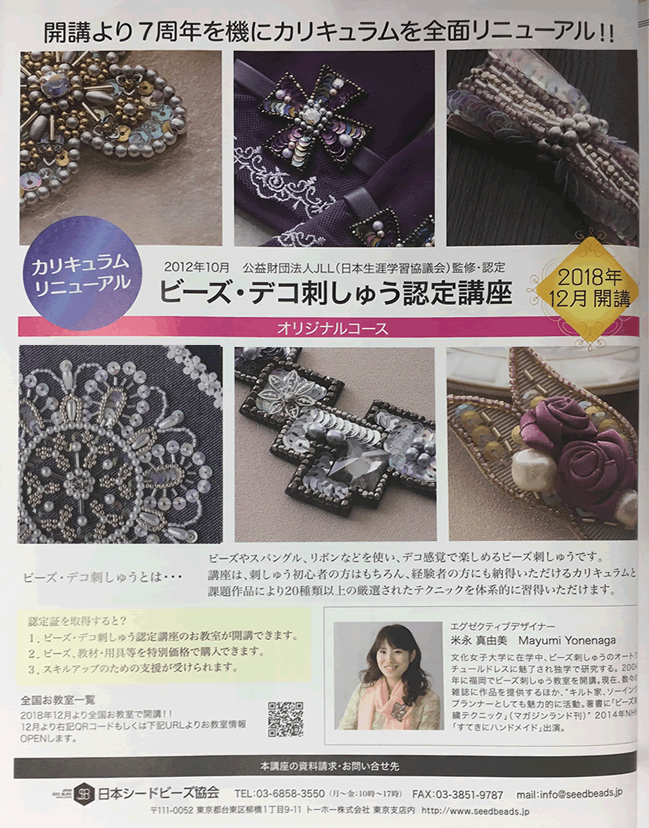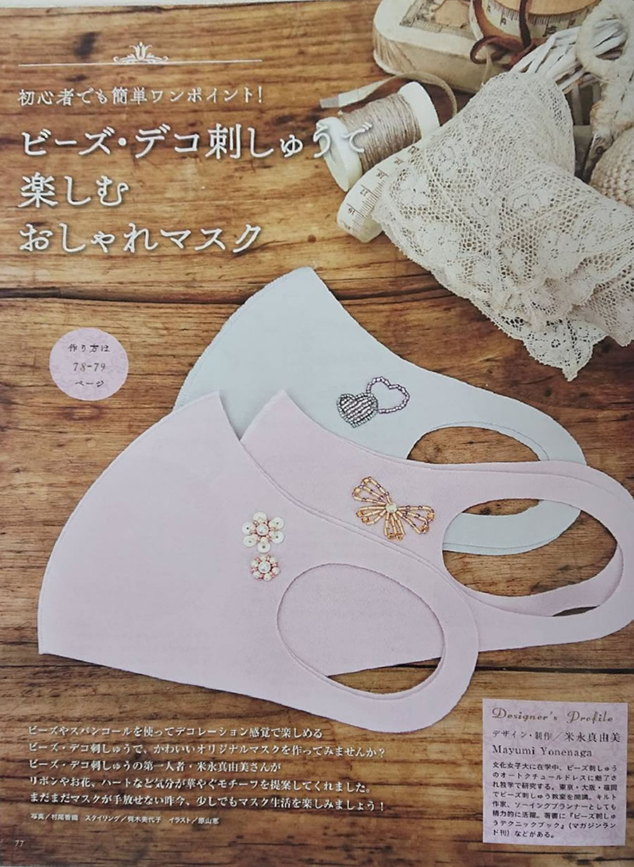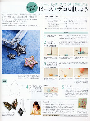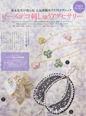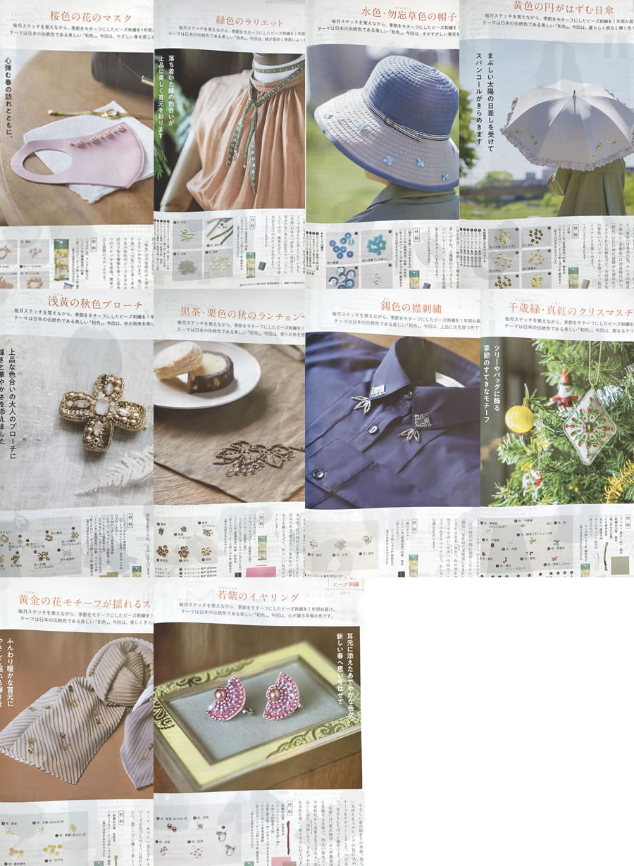 コットンタイム11月号でビーズ刺し子を紹介していただきました。(33~35ページ)