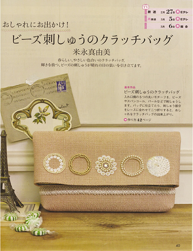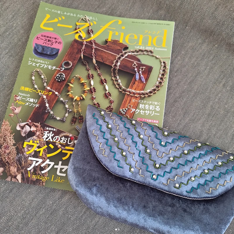 ビーズFriend vol.84 秋号にビーズ刺し子のクラッチバッグを掲載していただきました。