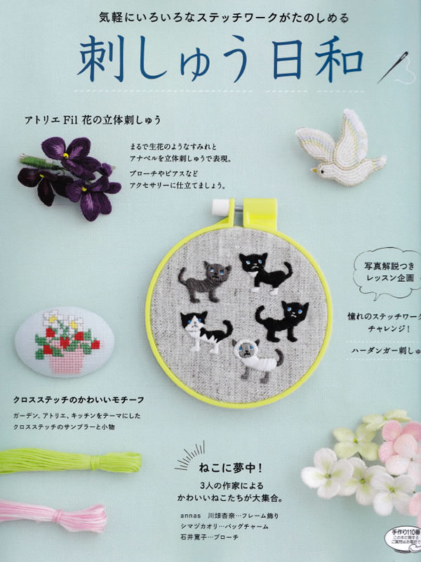 刺しゅうを中心に、糸と針で楽しむ手芸を紹介。