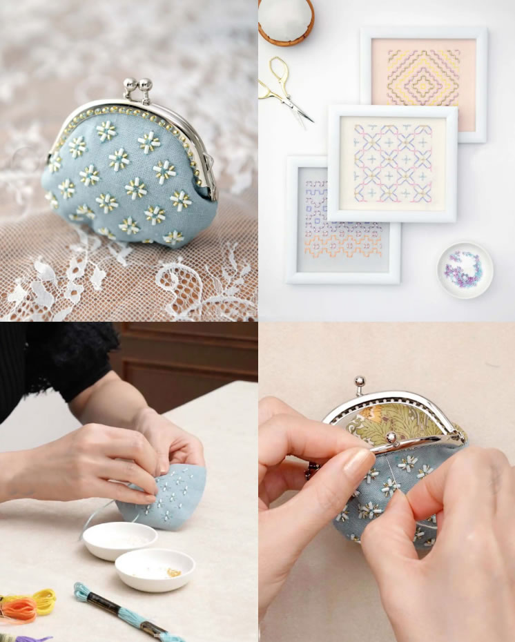 2回の講座で、ビーズ刺しゅうのバッグを作る短期集中講座です。