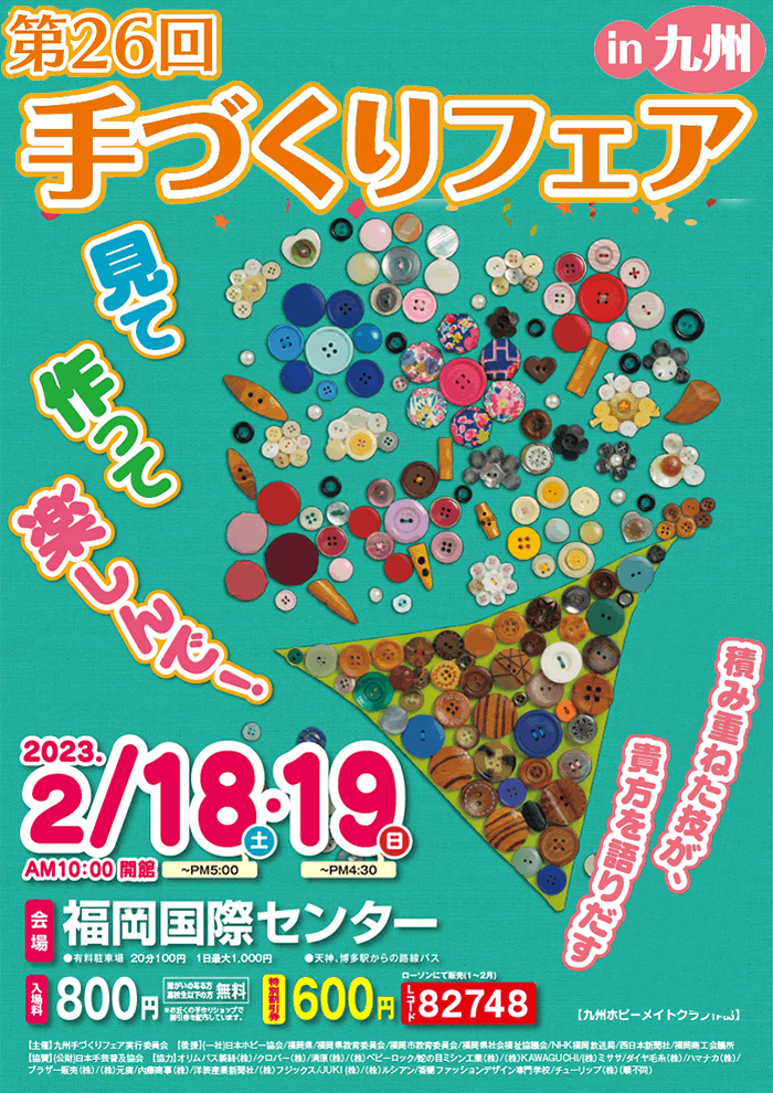 | 持ち物 | はさみ、待ち針、定規、ボールペン、筆記用具、拡大鏡など(必要な方のみ) |